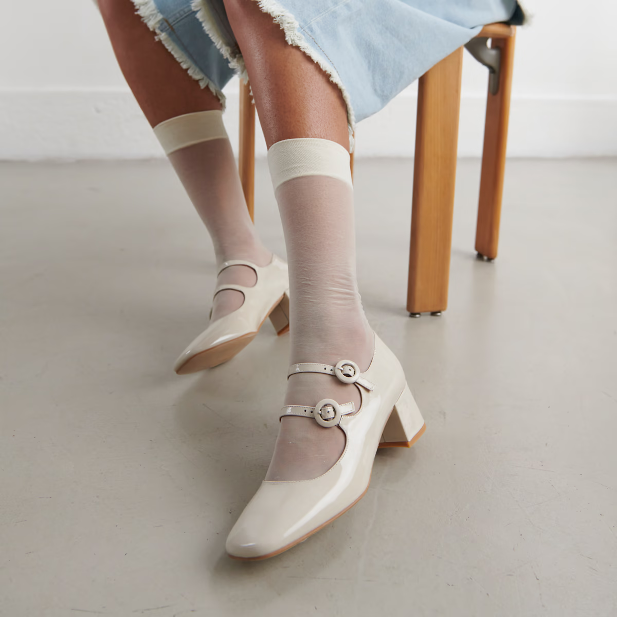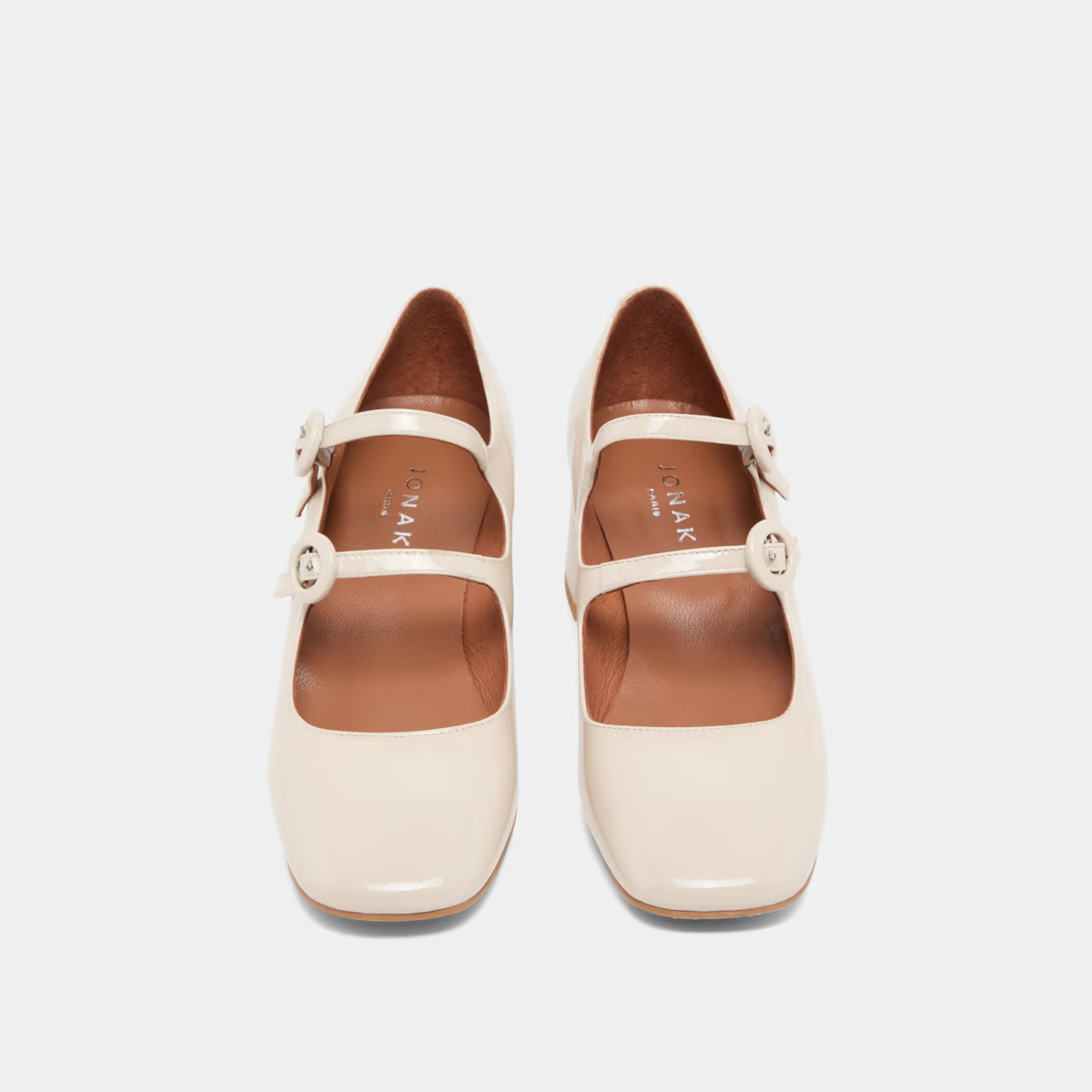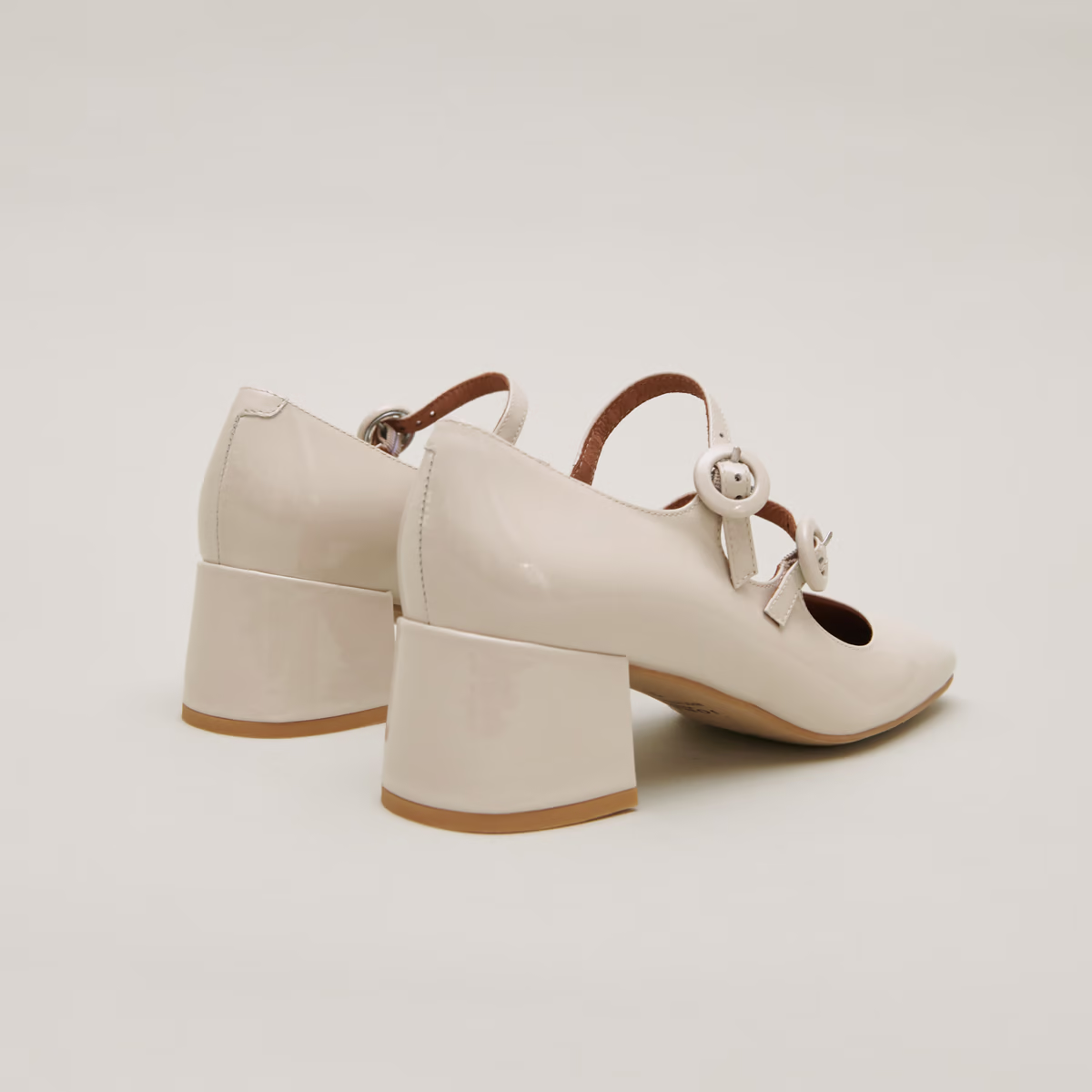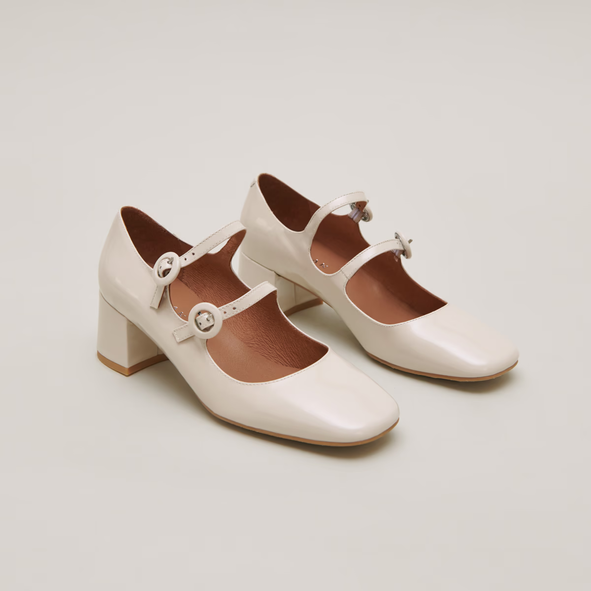 Si vous vous considérez adeptes de la mode vintage, les DELOU sont faites pour vous. En effet, ces babies à talons s'imposent de manière tendance mais gardent également toute l'esthétique qui vous a précédemment plu. Leurs bouts carrés, leurs légers talons et leurs doubles brides sauront s'associer à toutes vos tenues, en vous assurant un maintien complet. En vernis écru, apportez une couleur claire dans votre placard à souliers.