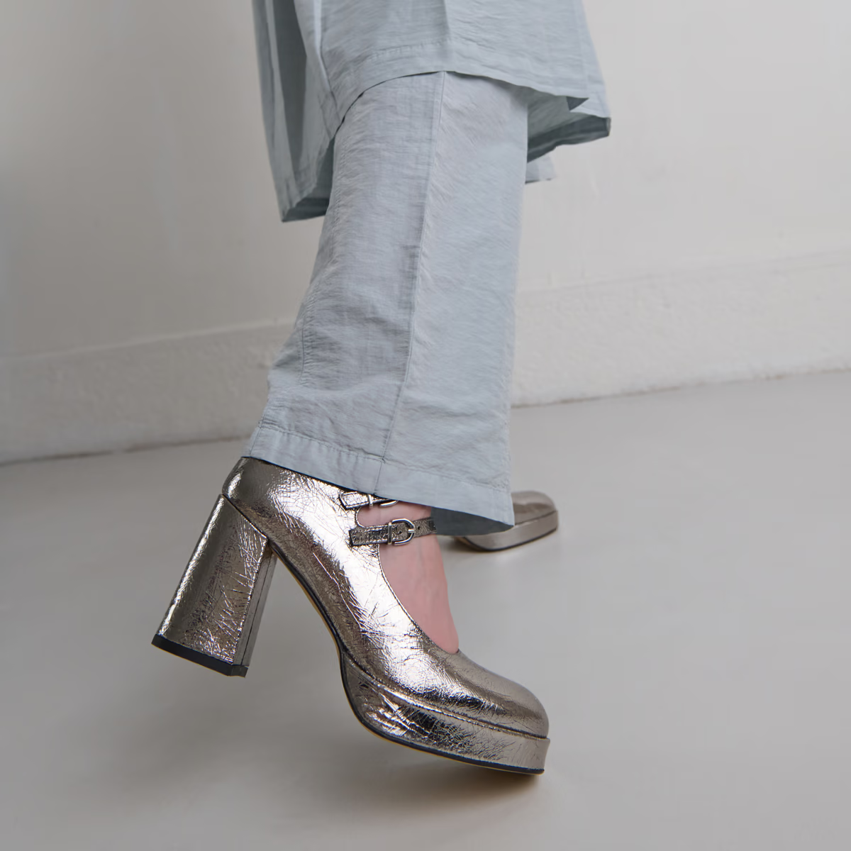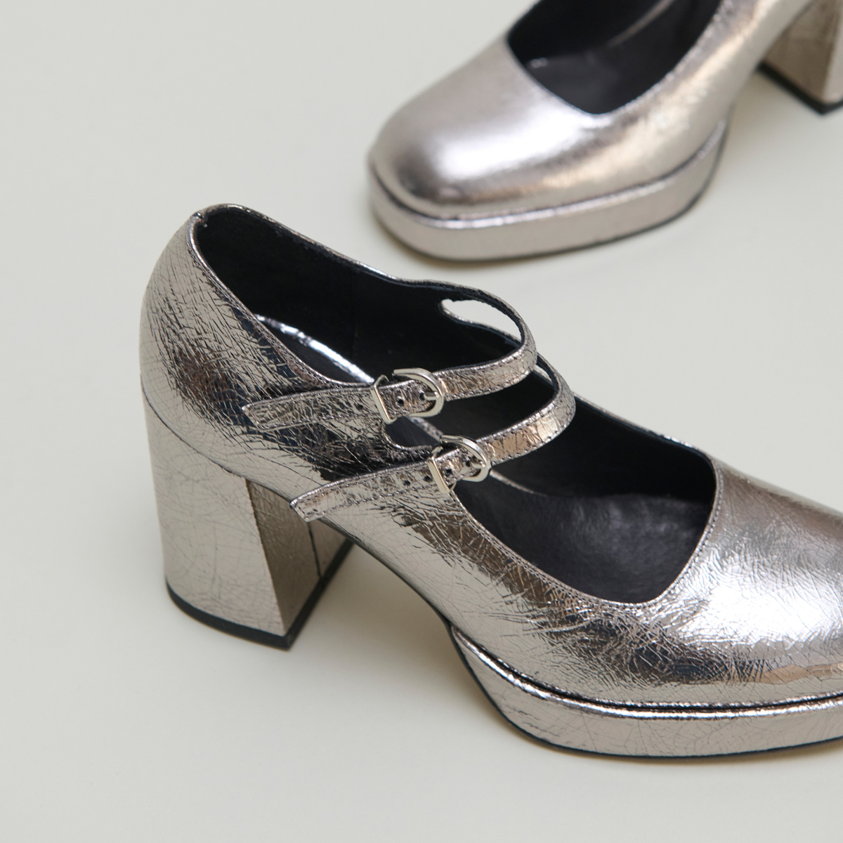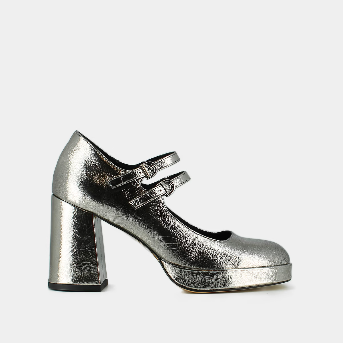 Adoptez les VERITE, nos babies à doubles brides et plateformes qui assureront le confort de vos pieds tout en élançant votre silhouette considérablement. Leur cuir métallisé argent foncé quant à lui sera parfait pour ajouter la touche finale à vos tenues de soirée. Ce coloris se démocratisant dans la vie quotidienne, n'hésitez pas à les porter tous les jours pour combiner élégance et originalité.