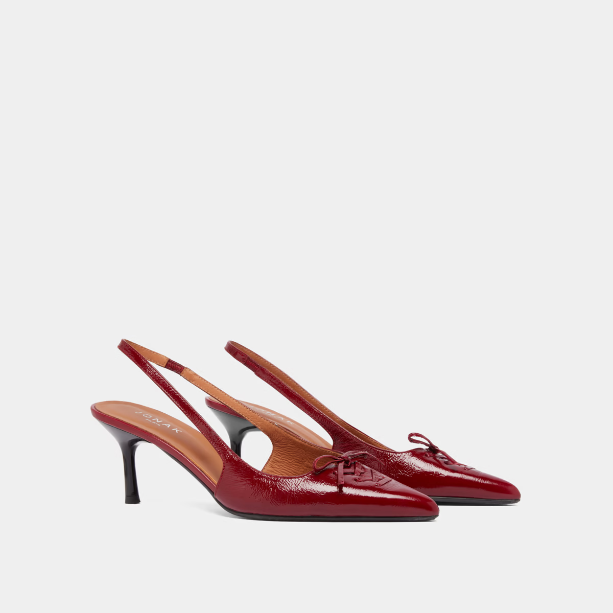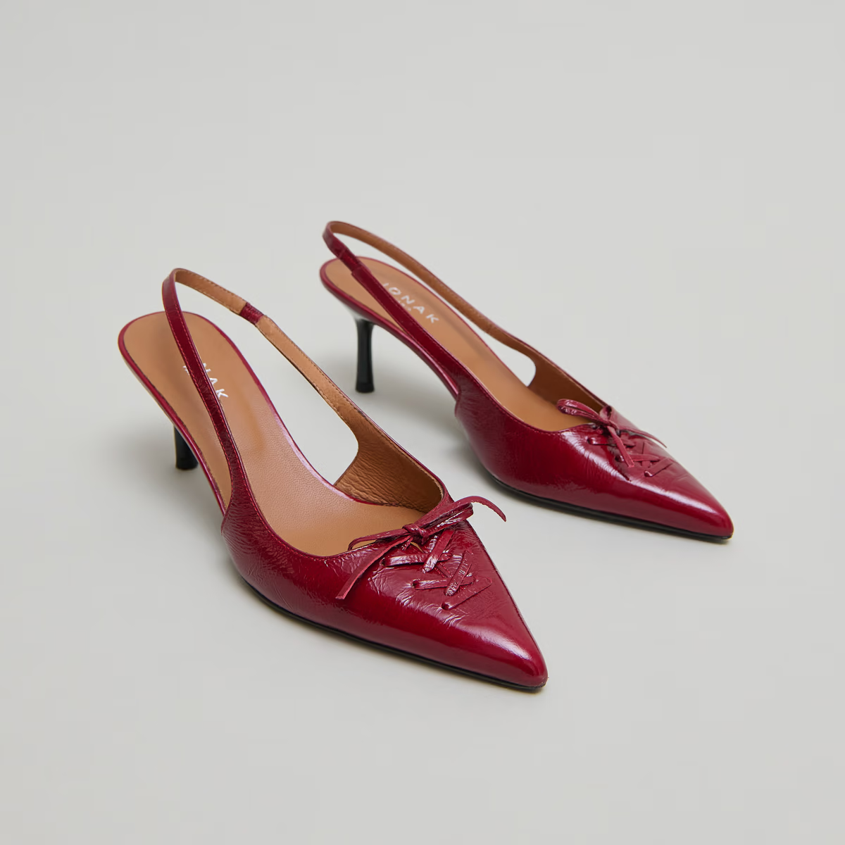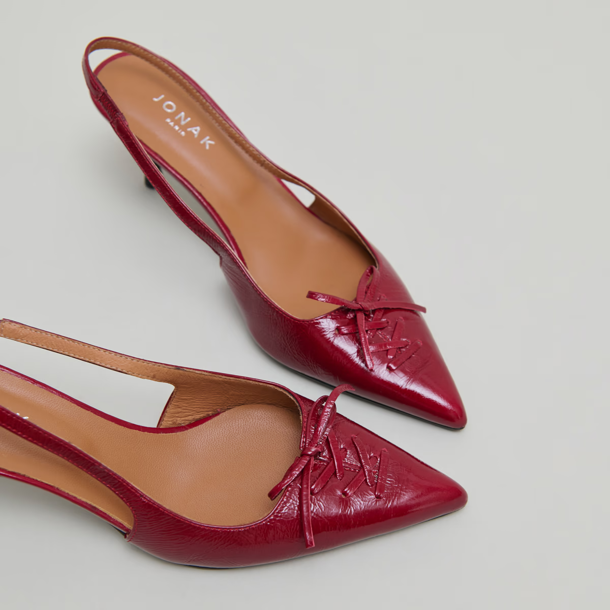 Subtils et raffinés, les escarpins DOLENE sauront convenir à toutes les personnes en recherche de LA paire. Laissez-vous tenter par les bouts pointus joliment mis en avant par des lacets en cuir brillant, uniformisant le tout. Les bouts arrières quant à eux, sublimeront vos pieds et leur confèreront une cambrure irrésistible. En rouge carmin, craquez pour ce modèle féminin et profond.